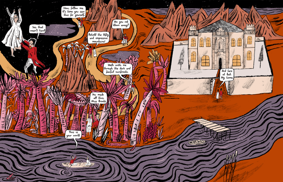Greenberg’s graphic novel is really wonderful, and for the Brontë fan it contains lots of fascinating little connections between the imaginary worlds that the children played in and the novels that the adult Brontës would go on to write. Much of the Angria and Gondal writing ended up being published as juvenilia, and I’ll track it down at some point. For now, I am happy to report that Gondal has its own entry in Alberto Manguel and Gianni Guadalupi’s glorious reference book The Dictionary of Imaginary Places. (It’s slotted in between the village of Goldenthal and Gondor from Middle-earth.)