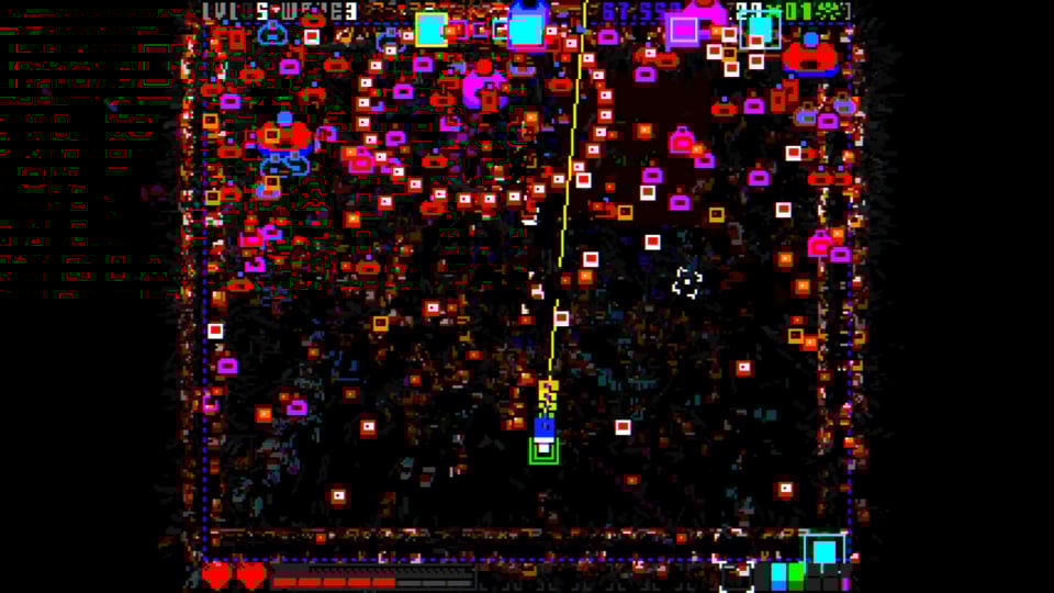 And of course this is mirrored by the fact that the player has so many things to think about too. Where to go, where to go next, what to prioritise, where to aim, what to collect. I spend a lot of the game frantically trying to find myself on the screen, and that’s always a good sign with these twin-sticks.