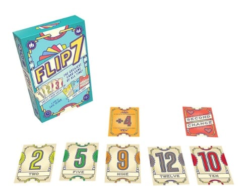 Flip7 is a card game created by Eric Olsen. It’s a push-your-luck game, and it’s incredibly simple to learn and teach and play. The cards have numbers from one to twelve on them, and players are dealt a single card at a time. Each turn they have to decide whether they want another card or whether they want to bank the numbers they have so far. If you manage to reach seven cards, the round’s over and you get a bonus. If you get a double of one of the cards you already have, you lose your cards and you’re out for this round. First player to 200 points wins, and the wrinkle is, the higher the number on the card, the more copies of that card there are in the deck. Magic. CD