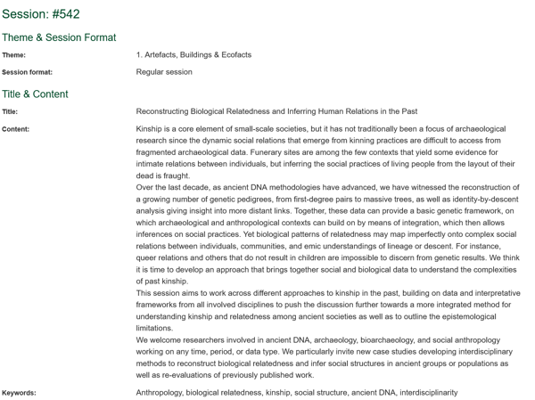 In August, I'll be in Belfast at the annual European Archaeology Association annual meeting. As big conferences go, I enjoy EAA a lot. I have to be there because I edit the society's journal (a most excellent publication, if I say so myself), but I'd do my best to attend anyways because the conversations are excellent and the quality of presentations very high. This year, along with brilliant colleagues Dr. Maïté Rivollat and Dr. Wolfgang Haak, I'm co-organising a session titled Reconstructing biological relatedness and inferring human relations in the past.