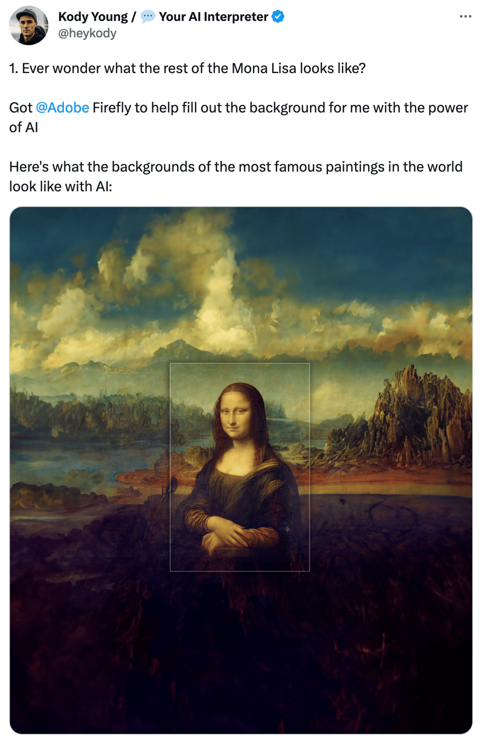 What's funny to me, though, isn't so much the added material. That's just sad. The funny thing -- still makes me laugh -- is the phrase "the rest of the Mona Lisa" and the idea that someone would go to the Louvre, say, stand in front of that painting and think "I wonder what the rest of the Mona Lisa looks like".