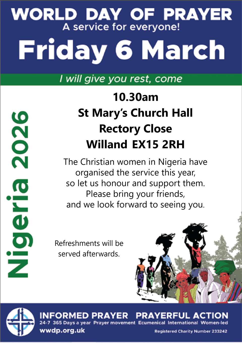 10.30am World day of Prayer - Willand Church Hall - see details below