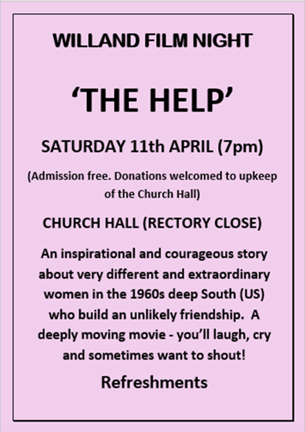 Wednesday 25th 7pm St Mary’s Church Hall – Willand