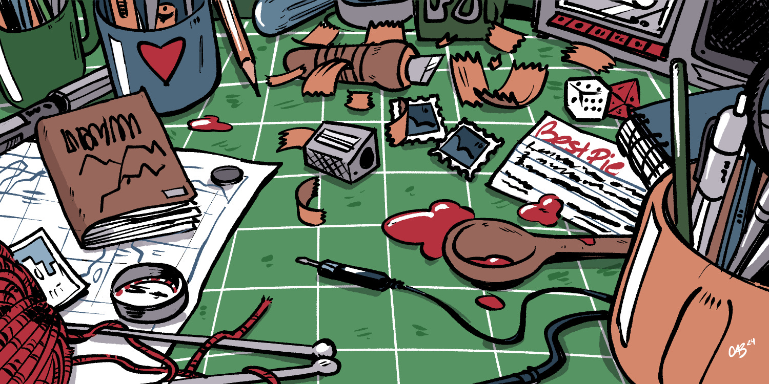 Pas beaucoup de dessins cette semaine, car gestion, etc etc. J’ai quand même fait une banner pour le serveur Mastodon d’un de mes followers de longue date. Son serveur se concentre sur les hobbies traditionnels et j’ai décidé de dessiner un de mes motifs préférés, la table de travail encombrée.
