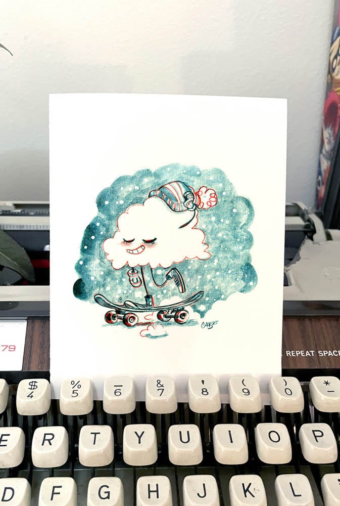 Faire le ménage de mon matériel artistique m’a donné le goût de jouer avec des crayons (donc faire ma job). Un après-midi plus tard, j’avais une très jolie illustration de carte de souhait.