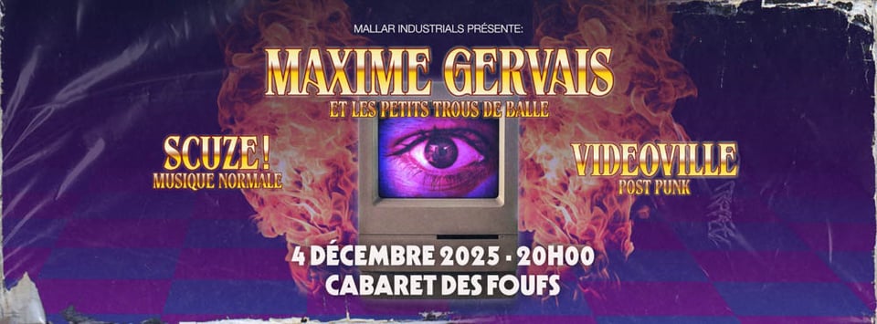 Le remède contre la déprime saisonnière c’est le show combiné de Maxime Gervais et les Petits Trous de Balles, Scuze! et Vidéoville jeudi le 4 décembre aux Foufs. Beaucoup de guitares, beacoup d’amis, beaucoup de fun!