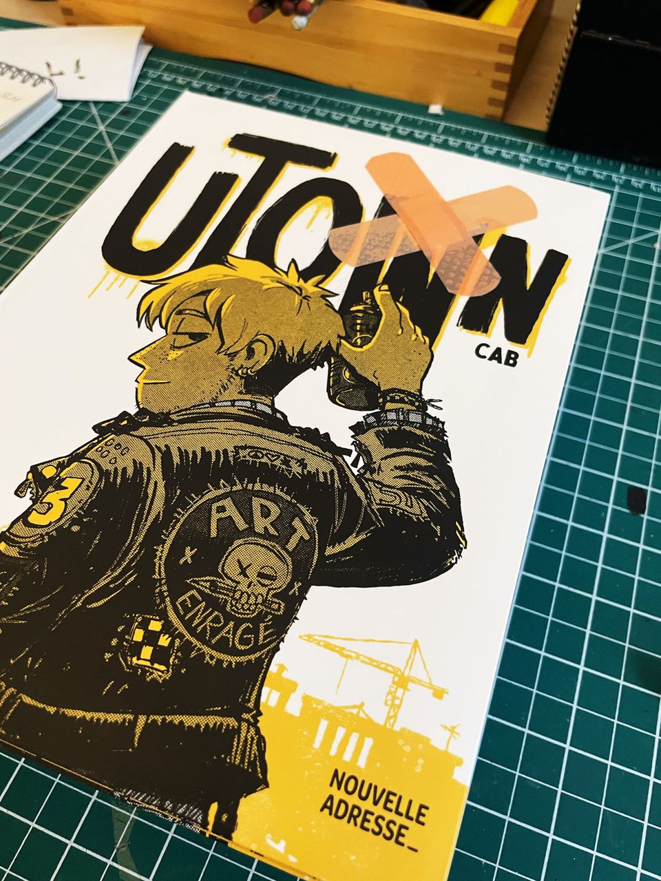Au fil des salons, des festivals et autres, j’ai charrié mes livres à en pu finir. Disons que certaines copies de Utown et de Hiver Nucléaire sont un peu fatiguées d’avoir été sortis et remis en boîtes. Je vends donc désormais des exemplaires à la couverture légèrement abîmées de mes livres, à rabais. Ce sont des livres neufs: l’intégrité du livre n’est pas affecté et l’intérieur est complètement intact. Il s’agit plus souvent d’un bas de reliure un peu fripé ou d’un coin moins droit, probablement le résultat d’un séjour cahoteux dans une boite. Je n’en suis pas encore à aller les porter dans un croque-livre donc je tente la vente à rabais! Il est toujours possible de les faire dédicacer, en passant.