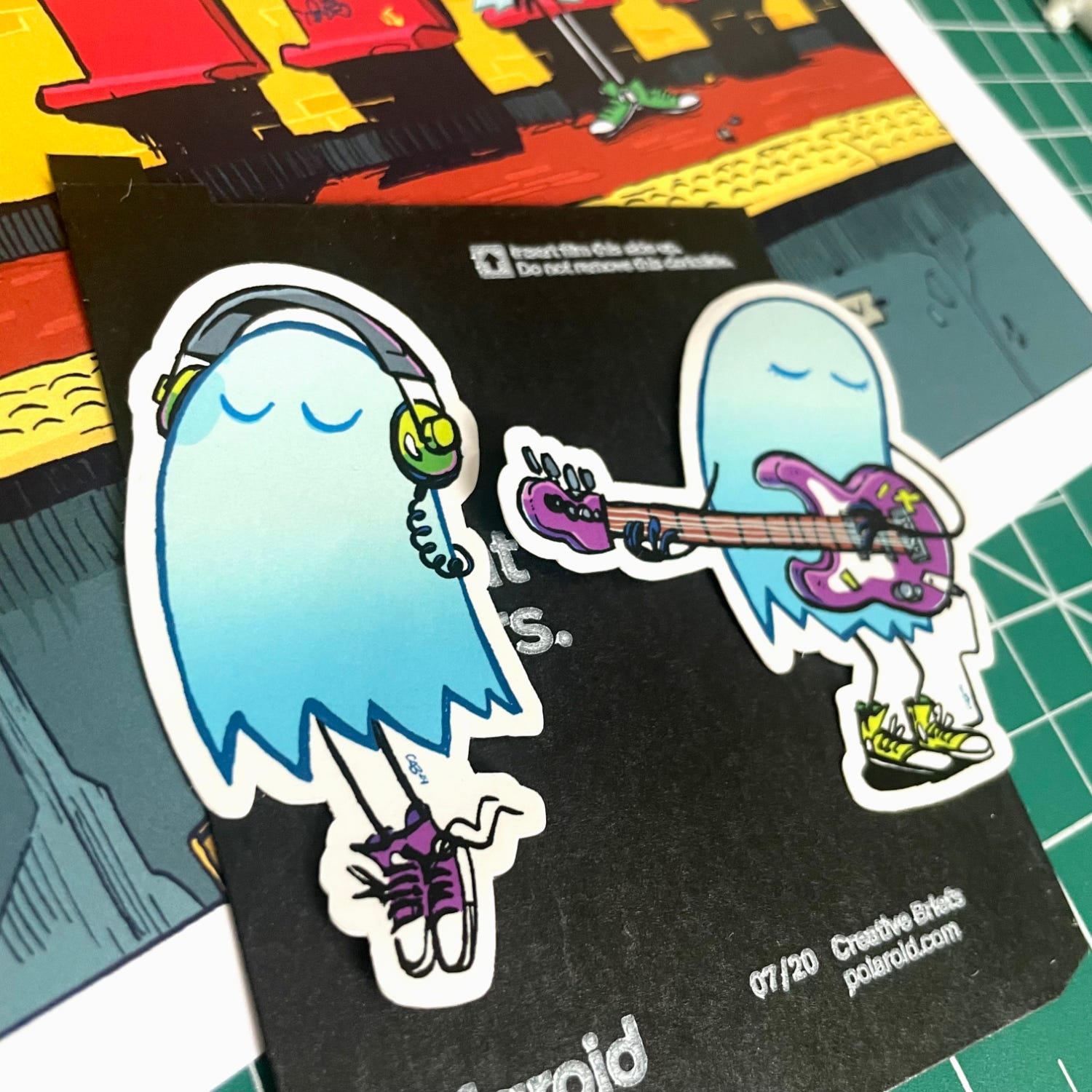 J’aurai à ma table tous mes prints, des art books auto-édités et un nouveau print de fantôme. J’ai également fait faire des auto-collants vraiment, mais vraiment cutes! C’est mon obsession du moment faut croire. Comme d’habitude, j’aurai aussi avec moi des planches originales de BD et des dessins originaux en “démo” et en vente.