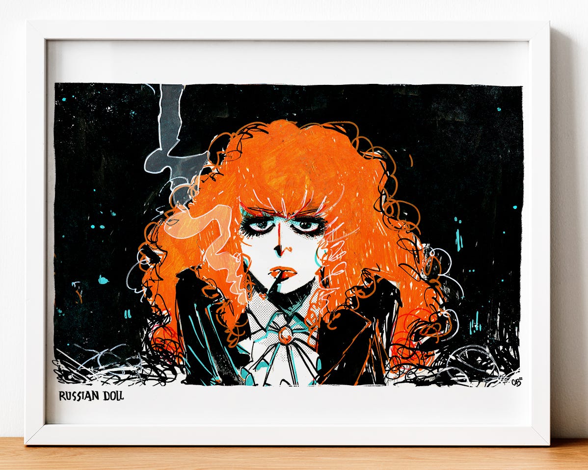 This month's print is Russian Doll, an impromptu fanart from the series of the same name. It’s a 100% traditional piece, done with Posca and ink in a small sketchbook. Each print is signed and shipping is free until June!