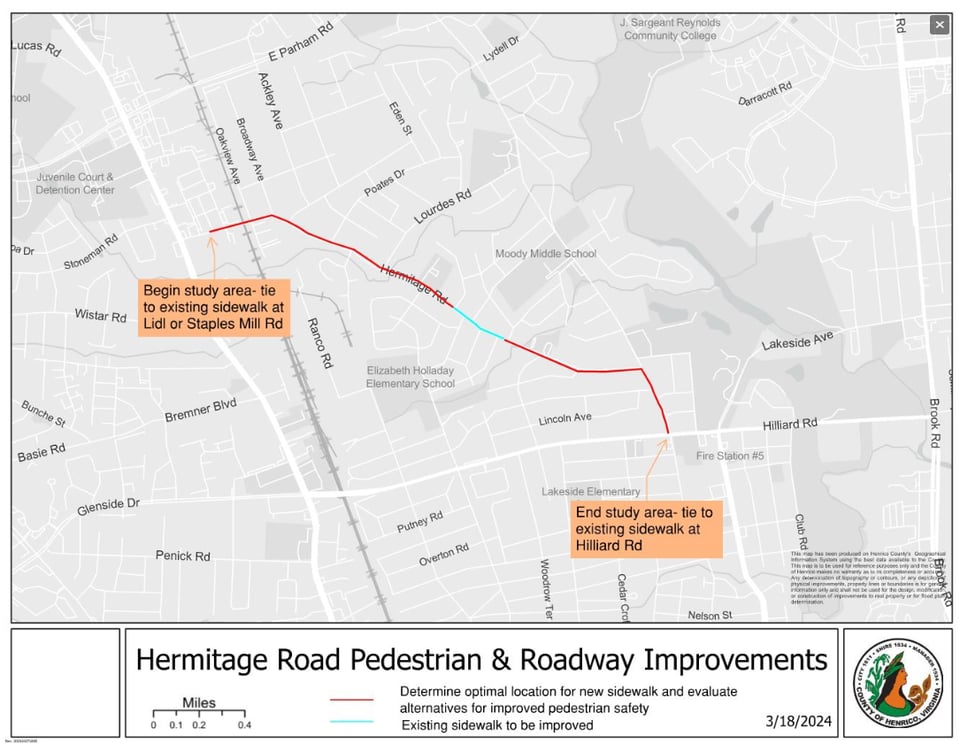 Pedestrian improvements are coming to Hermitage Road in Henrico, from WWBT.