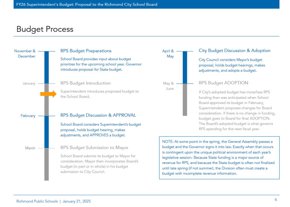 RPS Superintendent Jason Kamras presented a first draft of the FY 2026 Budget to the School Board at Tuesday’s Board meeting.