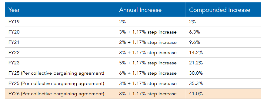 When teachers receive a 3% raise in FY 2026 per the collective bargaining agreement, the overall compounded increase from FY 2018 will have jumped 42%, from an average annual salary of $52k to 73k. Kamras noted this difference represents the ability to pay a mortgage.