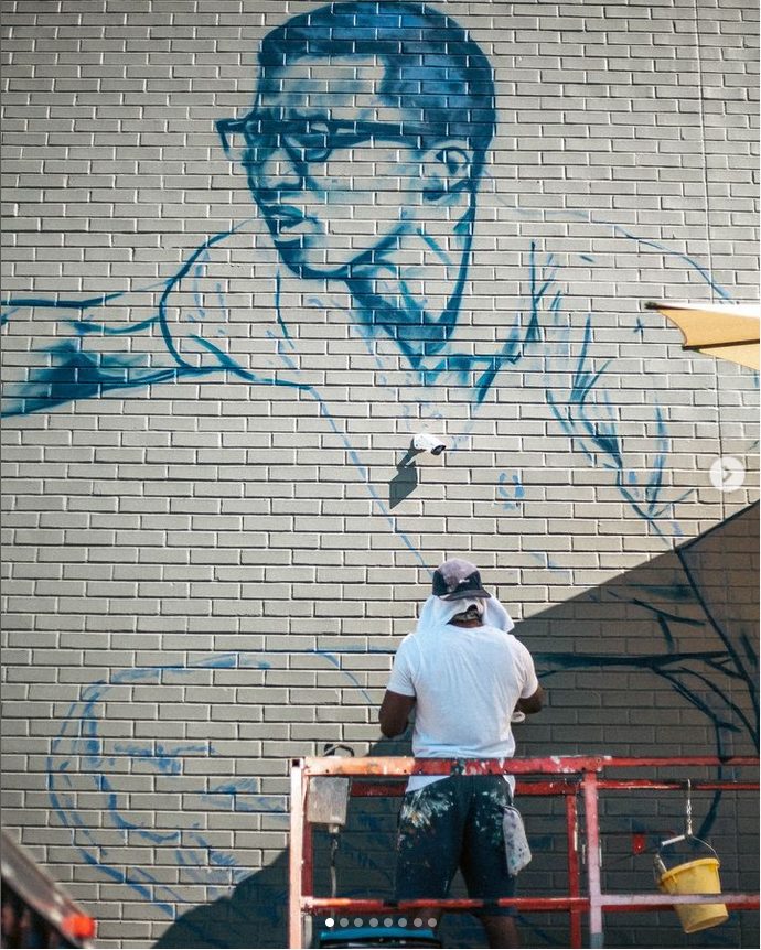 The new Marco’s Pizza on Arthur Ashe Boulevard has unveiled a mural by local artist and muralist Jason Ford. Here’s a shot of Ford working on the mural back in June, from his IG.