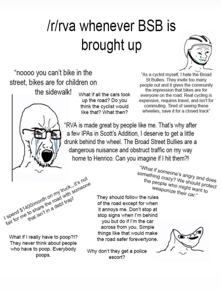 It’s Thursday, so the Broad Street Bullies will be out tonight for a massive group ride that meets at the Carytown Kroger at 7 pm.