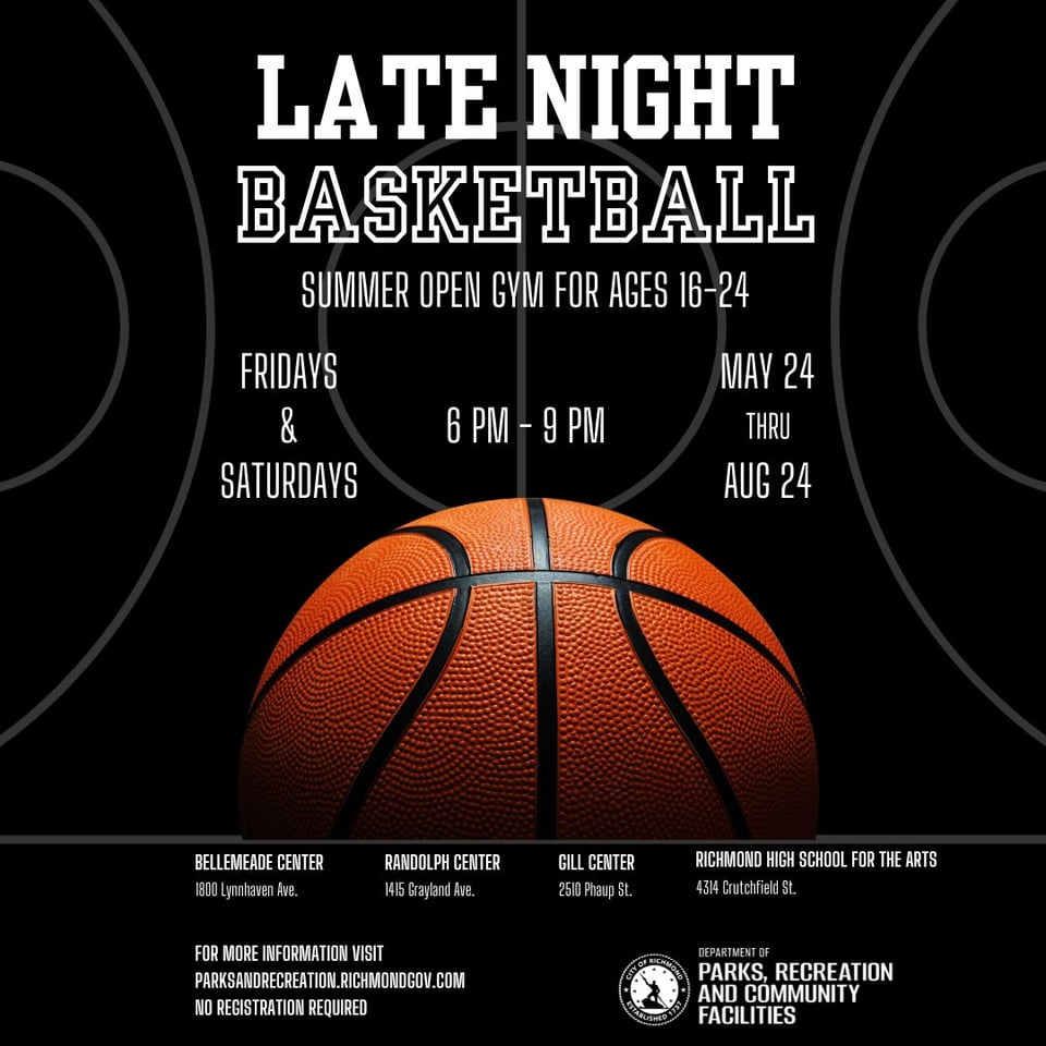 Richmond Parks and Recreation’s is hosting Late Night Basketball, an opportunity for young people to ball in a gym every Friday and Saturday night of the summer! Thanks to South Richmond News for promoting this great idea.