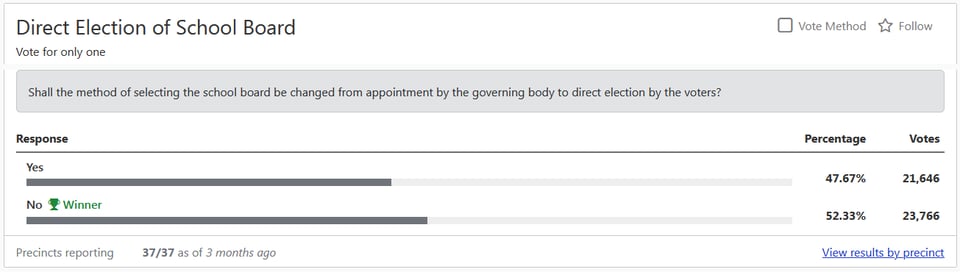 A grassroots campaign put the question on the ballot last November, but the measure to elect the School Board failed by 2120 votes, roughly 5 percentage points: