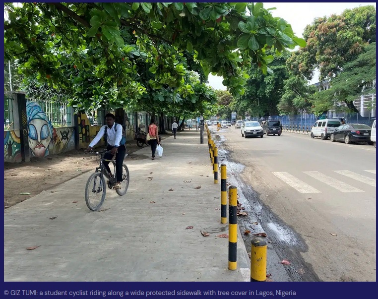 Here is a multi-use path, physically-divided with shade cover, from Lagos, Nigeria, where the temperature is always between 70 and 94.