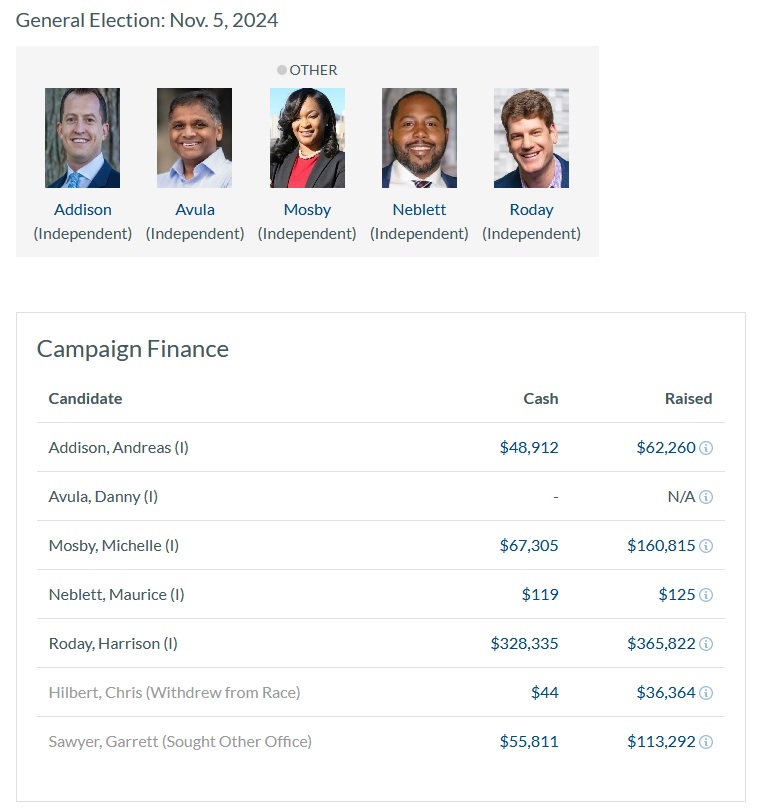 The candidates for Mayor of Richmond and their finances as of March 31 via vpap.org are: