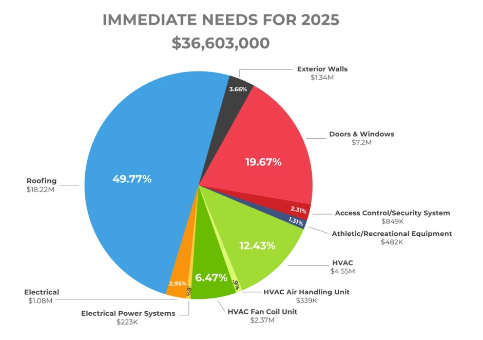 A comprehensive Facility Condition Assessment has been conducted for all Richmond Public School properties, stating the school system needs more than $43 million in immediate needs for 2024 and 2025.