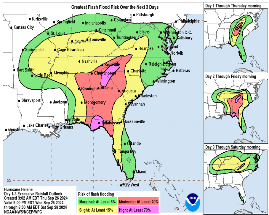 Virginia is under a state of emergency as Hurricane Helene approaches. Here’s a forecast of potential flash flooding from noaa.gov