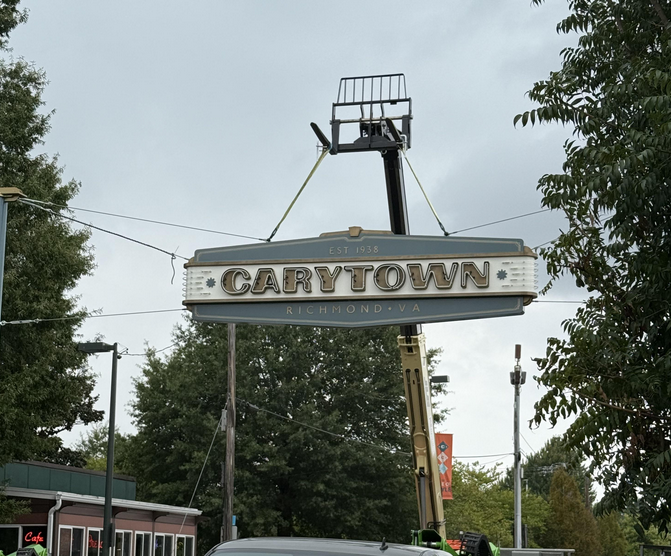The new Carytown sign has been installed. The sign will officially light up on Friday at 6:30 pm.