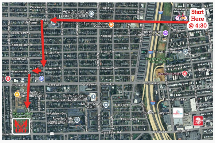 The parade begins at Albert Hill Middle School at 4:30 pm and ends at Mary Munford. Helmets are required.