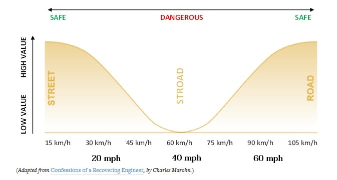 Michael Durand-Wood explains how transportation engineers often prioritize high speeds above all, no matter what. But there is a realization that there is a place for high speeds (roads) and a place for low speeds (streets).