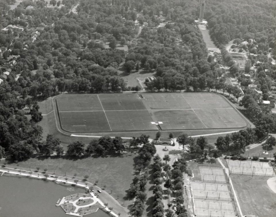 Here’s a photo of the Byrd Park Reservoir from 1971. Built in 1874, the open-air reservoir was enclosed with prestressed concrete roofs (which are currently being replaced with aluminum roofs) in the early 1970’s.