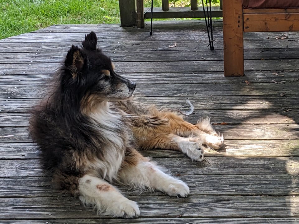 Since this is catch-up for the past year, we also have to note the passing of Eero, our noble Auskenhund (probably a Australian Shepherd + Husky mix) who had been with us since 2011. He was a rescue, and had been burned before he was given to the rescue group. We never learned the backstory, and we never had any information about his past. He was post-puppy (but probably not by much) when we got him, and he had a shaved back from treatment and care. That grew back, but there were also some areas of scar under his fur that never filled in. But he was such a floof no one ever could tell.