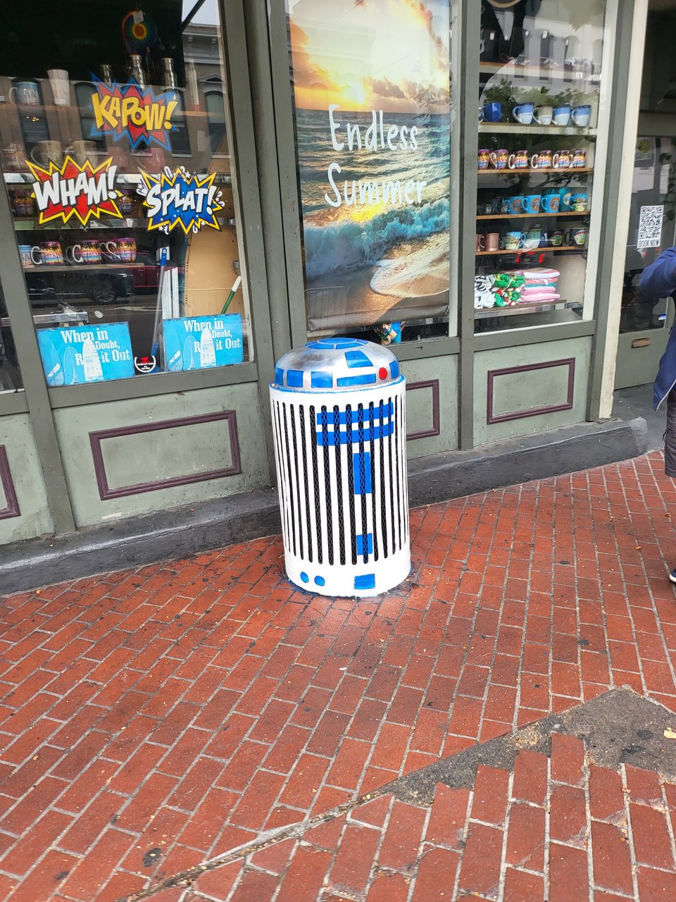 This R2-D2 looks like a trash can, but I think it's actually maybe an electrical thing? Whatever it is, it was on the street during SDCC and seems like it might be that way year-round and I thought it was funny!