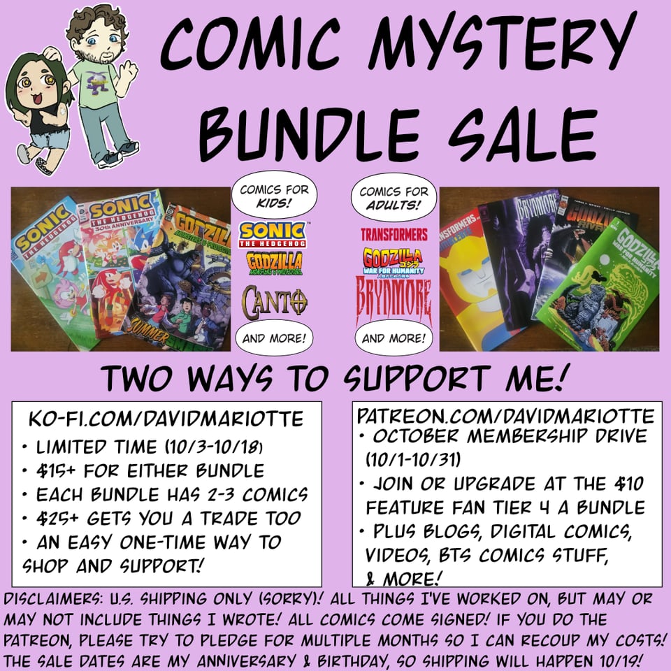 Birthday cards, gifts, art, and messages! People who bought my Kofi mystery bundles (last call)! People who subscribed to my Patreon (mystery bundles til Halloween at $10+, plus a Wreckers #1 script dissection coming this weekend)! People who sent me $$$ because it's my birthday because, boy, I need 'em (see Kofi link above...)! Blank Check (Podcast), Solve This Murder (Podcast) , Craig of the Creek (Cartoon), One Piece (Manga), Pokemon Violet (Video game), The Archive Undying by Emma Mieko Candon (Book), Yu-Gi-Oh: Duel Links (Video game), The Traitors (TV show), Mothership (This funky space "tiki" bar in town! It's themed around having crashlanded on an alien planet, so like half the bar is what's left of your ship and the other half is like the natural cave formation and the weird irridescent plant life and stuff. It's really cool).