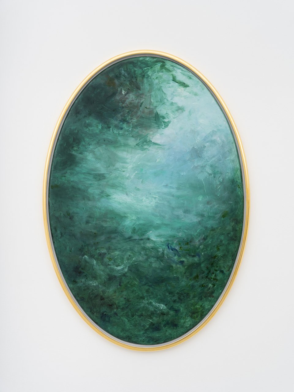 Oil on birch ply with water-gilded, artist-made gold leaf frame.