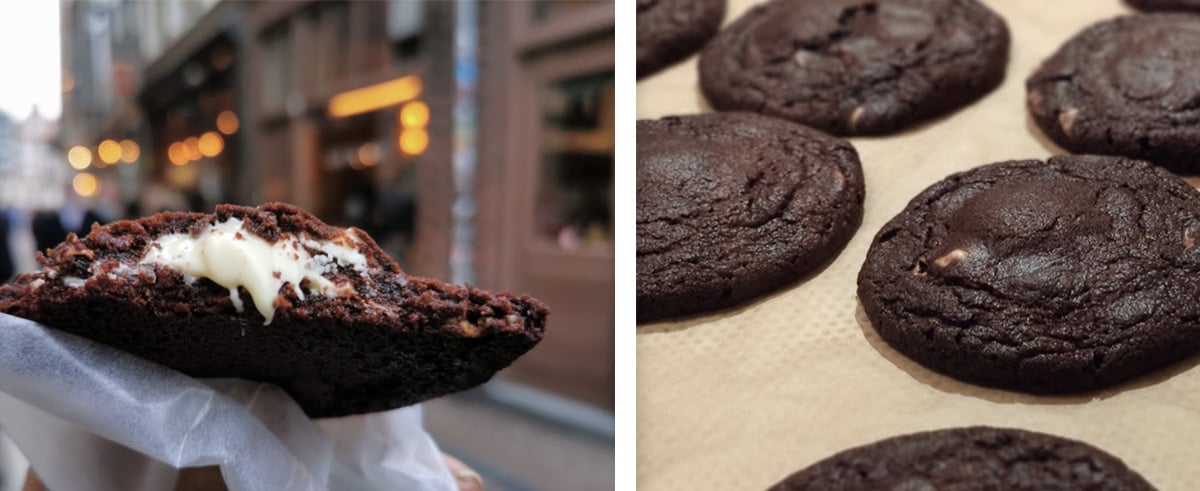 I'm a cookie-fanatic. I love cookies. So obviously, trying the best cookie ever directly became one of the top priorities on our trip itinerary. I would consider the trip a failure if I didn't get me that cookie. ππ¨ Fast forward to the trip π¨π¨ When we got to Van Stapele Koekmakerij we found a cosy, but very tiny, bakery. It could only fit around 6 customers at a time. And they only sold one product β A dark chocolate cookie with a white chocolate filling.