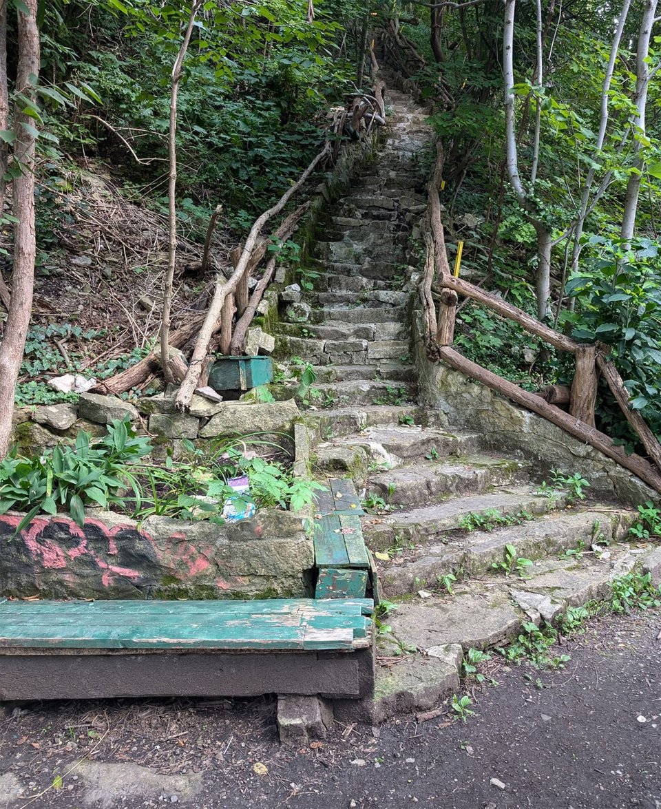 There’s these steps along the mountain brow called Uli’s Steps. These steps are right on my route and save me a bunch of time. It’s a beautiful little steep walk made of rocks with little bits of flowers beside it. Lovely on a nice summer’s eve and absolute hell on a slippery winter’s morn.