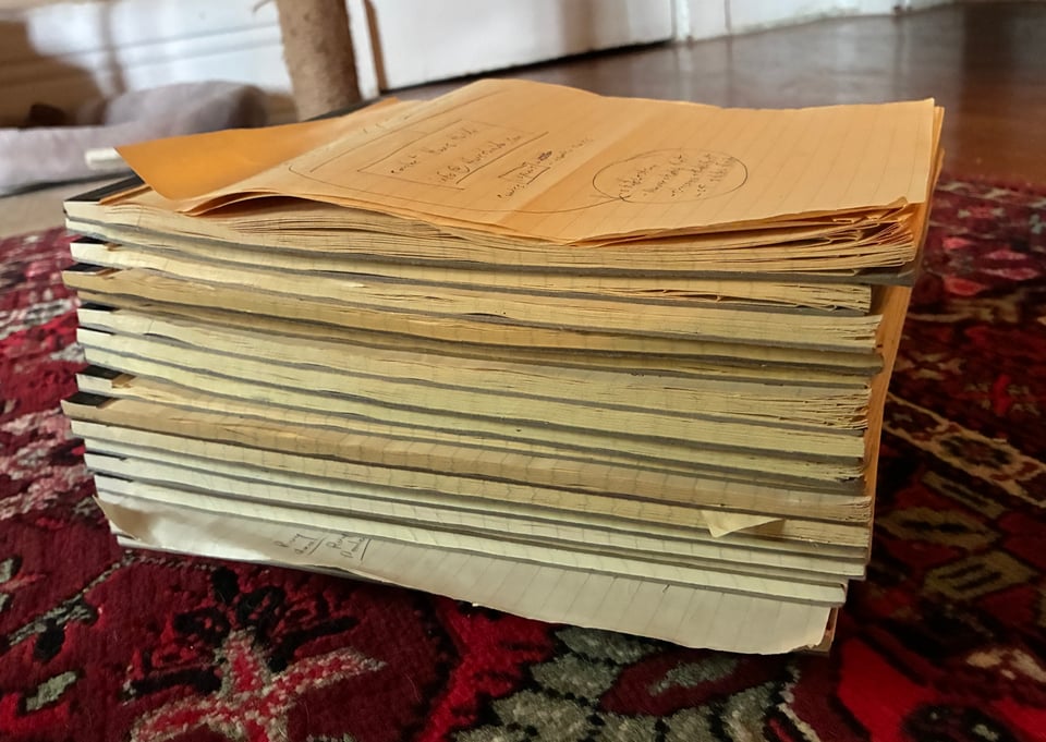 I still have the first notebook I had in high school. It holds my precious first movie script ideas.