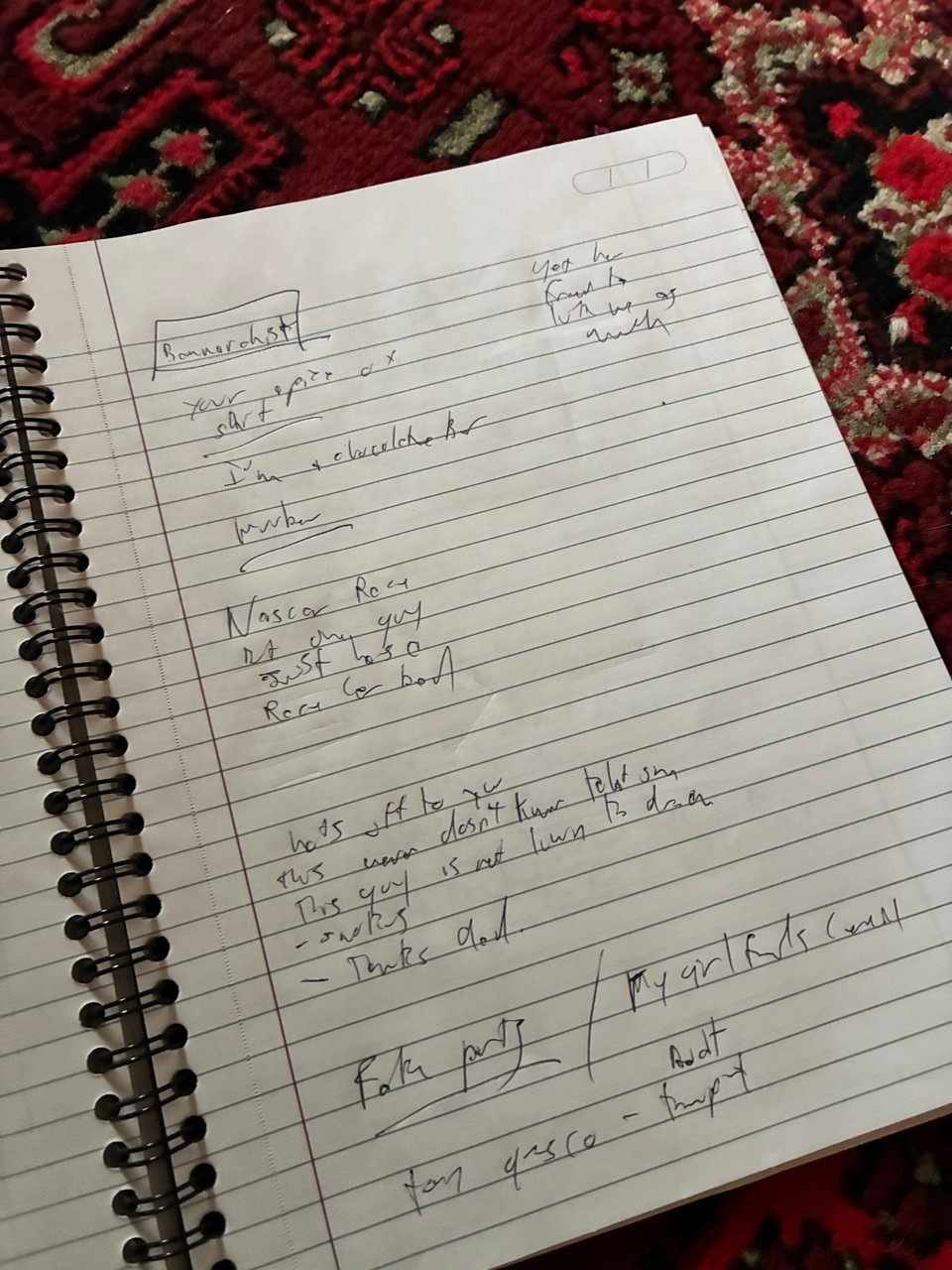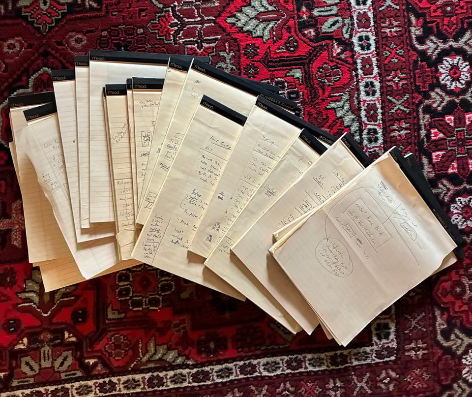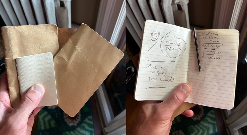 A large chunk of these notebooks are from my time doing stand-up comedy. Just endless little pocket-able books that I would bring on stage. Or sit in the back yard and smoke a million cigarettes, while I thought about bits like “What if someone from the 1700's travelled all across the ocean, but had to go back home because they couldn't remember if they turned their fireplace off.” You know? Classic stand-up. Relatable and easy to explain on stage.