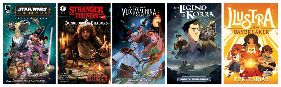 But my Star Wars one-shot came out, Stranger Things and Dungeons and Dragons: The Rise of Hellfire came to an end, as did Volume IV of Critical Role: Vox Machina Origins; The Legend of Korra: Mystery of Penquan Island also came out, as did Daybreaker, the first volume in the Ilustra series.