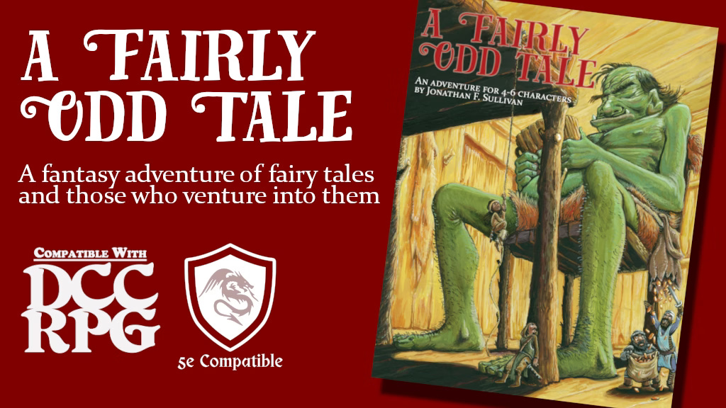 Then there’s A Fairly Odd Tale by Jonathan Sullivan (The Gongfarmer’s Militia). When your party is sent to parley with a mysterious witch, you assume it will be a simple fetch quest. But now you've been sucked into a crazy book filled with monsters and characters from half-remembered stories. Will you survive the strange candy house, make it to the top of the beanstalk, solve the riddle of the door, and find your way back home?