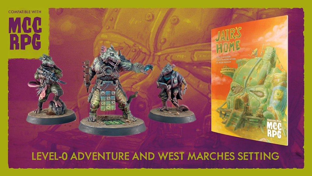 Jair's Home is a village built amongst the remains of a massive robot. Inhabited by mutant possums with psychic powers and led by the charismatic Jair. Compatible with Mutant Crawl Classics.