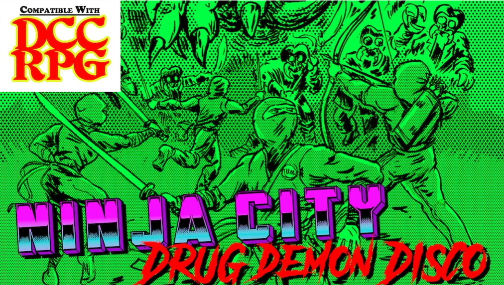 Joey Royale is back with a new adventure for Ninja City (powered by DCC). Ninja City: Drug Demon Disco puts to paper a now-legendary after-hours GenCon game in which the Disciples of the 24th Chamber were given their names and belts. It is now time for the rest of you brave shadow warriors to join the clan.