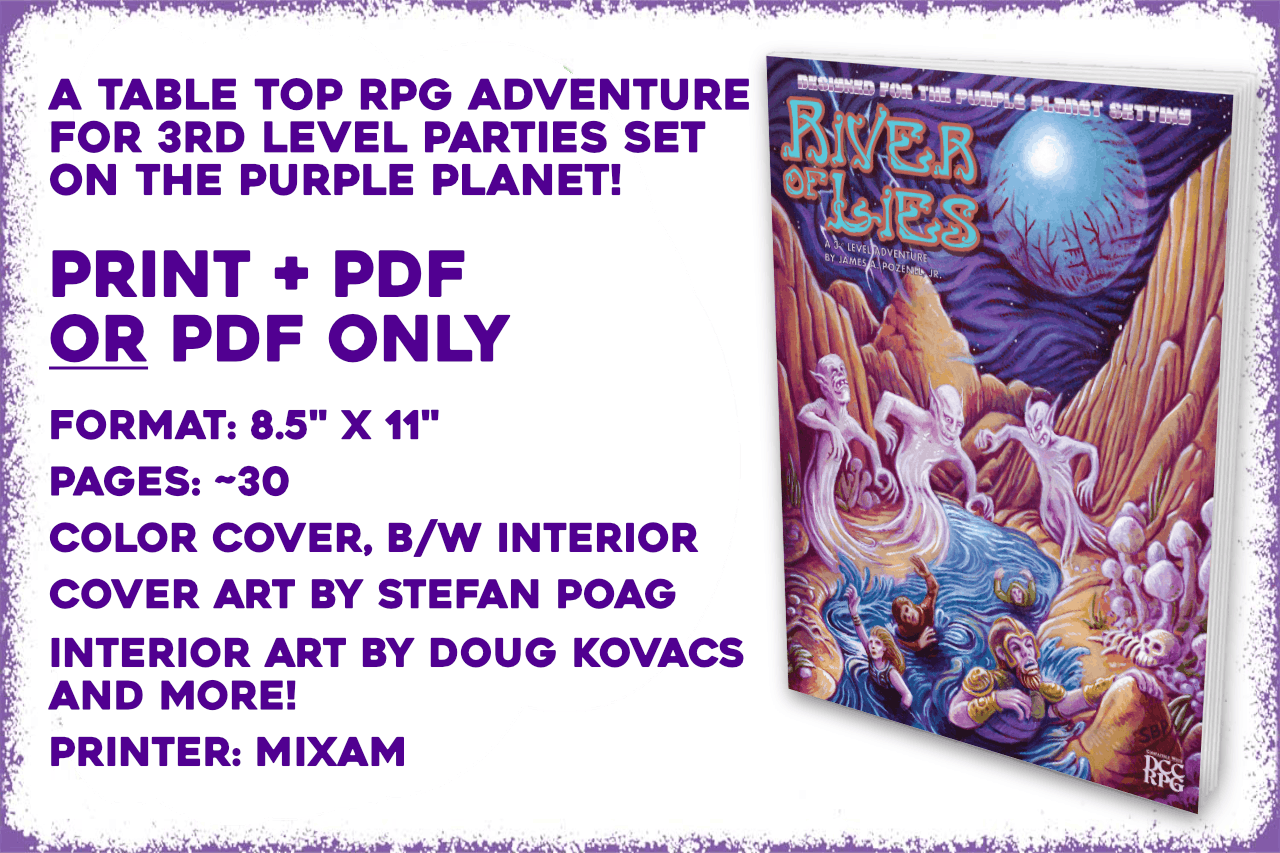 If you read my newsletter, you likely already know about the crowdfunding for a hardcover reprint of the Purple Planet. However, there’s also the Purple Planet Horde. I wanted to take the opportunity to interview James Pozenel about Rivers of Lies. You may know James from some of his previously works: The House of the Red Doors, Enchiridion of the Computarchs, or Cats of Rahtlü. So if you’re interested, keep on reading!