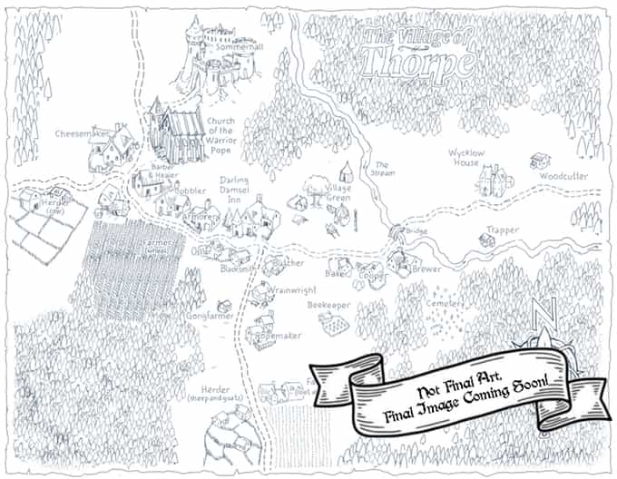 That’s in Hunters of the Goblin Grove alone, and includes, as you mentioned, several entries for Wandering Monsters, each with a local backstory that’s a few sentences long. In Feast of the Goblin Winter, there are numerous other tables that cover regional adventure hooks, Thief Guild adventure hooks, Power Elite adventure hooks, and Holiday adventure hooks based on Dark Ages holiday traditions. We want to deliver a whole world of lore-inspired adventure and information, including a lot that’s right there in the village, for campaigns to take shape or for a “West Marches” style experience where there’s a new event at the roll of a die!