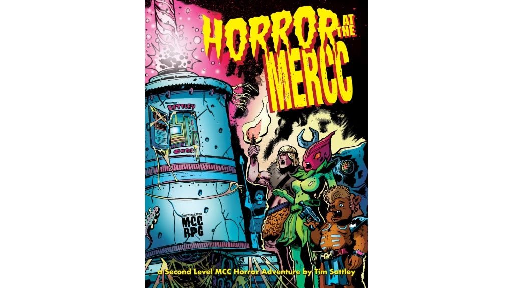 Tim Sattley began self-publishing 3rd-party Mutant Crawl Classics adventures in 2022 and has been busy! His publications include Get Me The Juice, Tribal Games - Tournament of Champions, and Badda$$ Bunnies! Now he’s got a new Kickstarter for a level-2 MCC adventure called Horror at the MERCC.