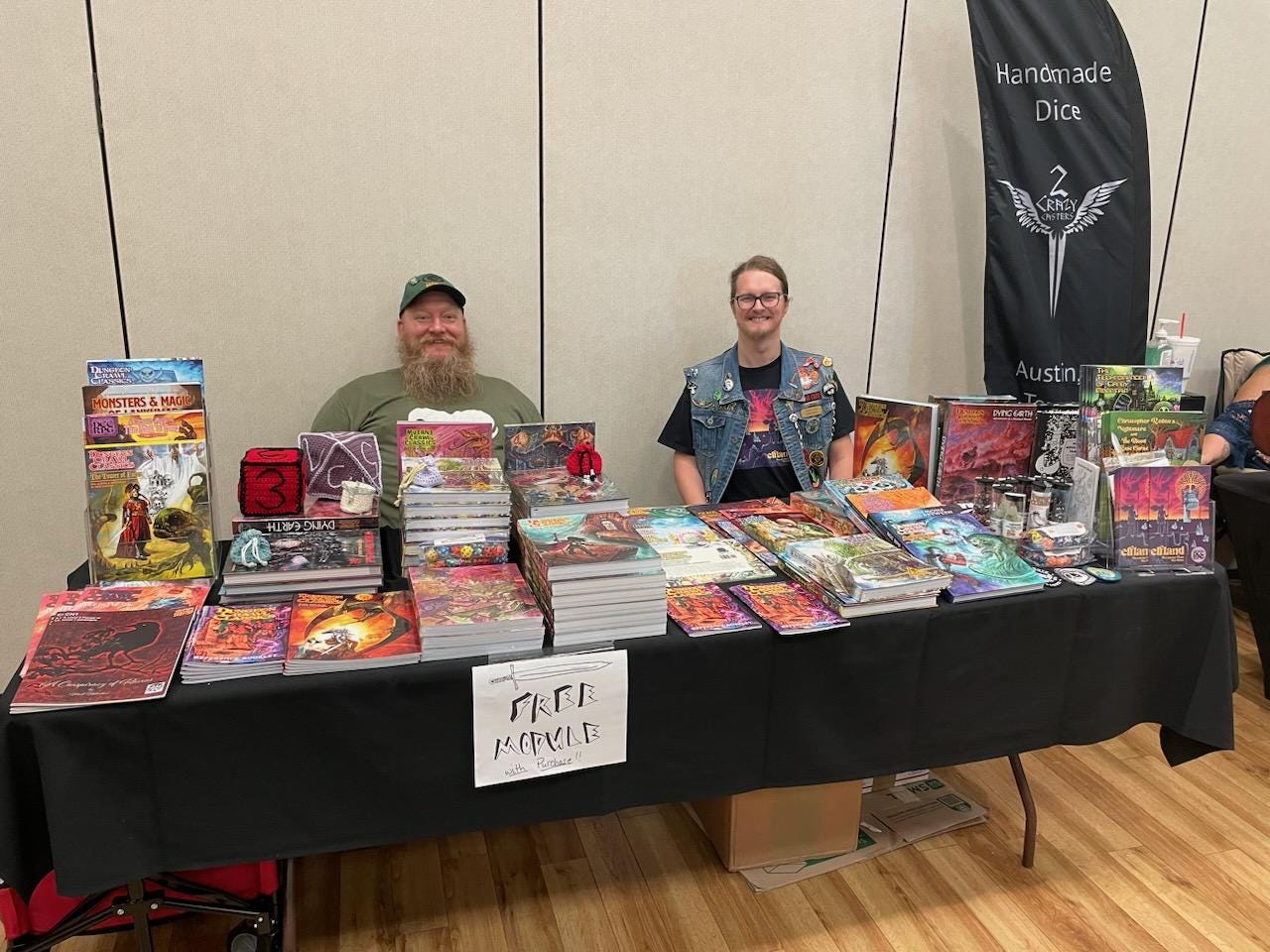 Running a booth was a great time! Despite there not being a ton of DCC games on the schedule, there were tons of DCC fans. We had 2 copies of the limited edition Glow-in-the-Dark MCC rulebook and they sold quick! I thought I’d bought enough product to be good for this con and also Long Con, but I’ve had to do a re-order!