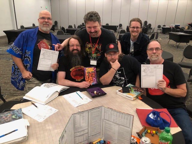 I ran 4 games: The Technomancer of Candy Mountain (MCC), Big Trouble for a Little Blood (Weird Frontiers), The Sinister Secret of the Slugmen (Weird Frontiers), and Christopher Robin’s Nightmare (DCC). All except that last one were playtests. The MCC one and the DCC one are both ones that I’ve published at this point, but the Weird Frontiers ones are planned for next year. Each one was a great game where I got to play with new and old friends.