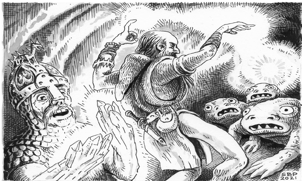 0-level funnel/gauntlet adventure for DCC/Shadowdark. Hirelings become heroes who might bring the gods and magic back into the world.