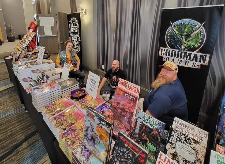 Another chill morning at the booth. During this quiet time, I reviewed the level 10 DCC adventure that I would run later that night. Around noon, Brendan LaSalle came over to sign a bunch of Xcrawl books for folks! We had some of the limited edition covers at the start of the convention, but they ran out pretty quickly!