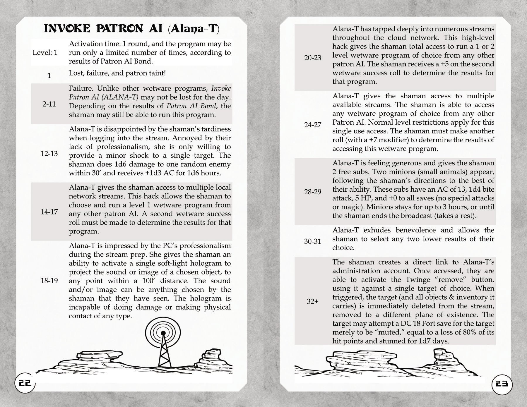 I settled on having a few short adventures that I wrote more in the style of an OSE adventure, and a new patron AI complete with patron taint, glowburn, and new wetware. Part of that is because Tim Sattley (Bada$$ Bunnies, Horror at the M.E.R.C.C.) offered me a that full patron write-up! I had several adventure outlines from when I was going through dungeon23. Conversations from our MCC episodes of Rules As Written had lead me to outlining several about the different antagonistic archaic alignments. I later repaid Tim by writing some stretch goal content for his Purple Planet adventure. I was more than happy to backdoor myself into the Purple Planet Horde.