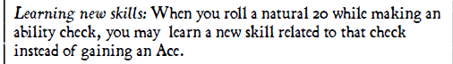 A completely different method of diegetic skill progression can be found in Frontier Scum, in which skills allow rolls to be done with advantage. Characters have skills like "lying to people" and "handling horses". These are free form in their creation. The game has suggestions of skills but also encourages players to just make up ones themself. And you can only have 5 skills at a time. When you roll a natural 20, you can add (or replace if you already have 5 skills), or get an Ace card (a meta-currency) if you're satisfied with your current skills.