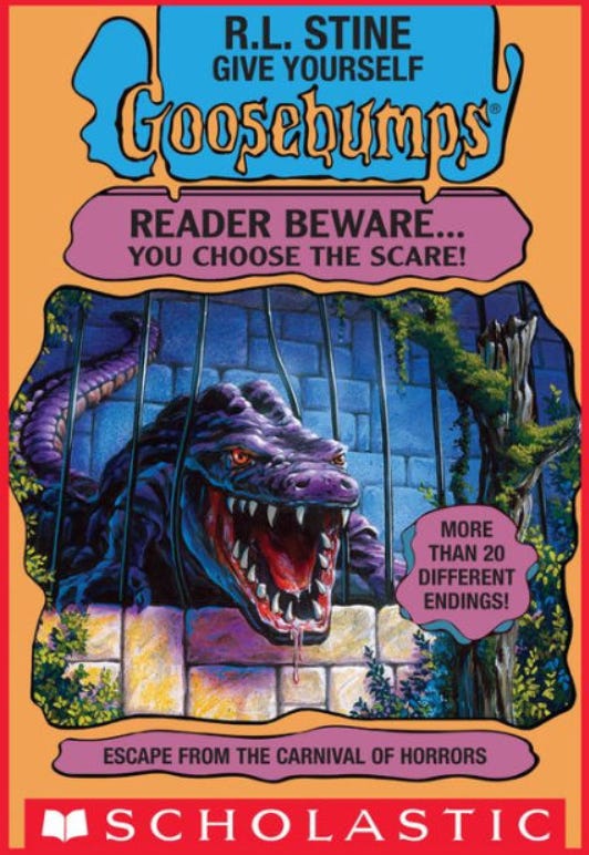 I still struggled to read until the second grade. I suppose I essentially powered through those struggles and it was largely due to finding books that held my interest. So it’s all thanks to The Hardy Boys and Goosebumps. Later, as a teenager, my parents would wonder why I was torrenting old film-noir and horror movies but it all began right there. However, I also found a few Give Yourselves Goosebumps books (aka, Choose Your Own Adventure). I think that was the real first start with roleplaying.